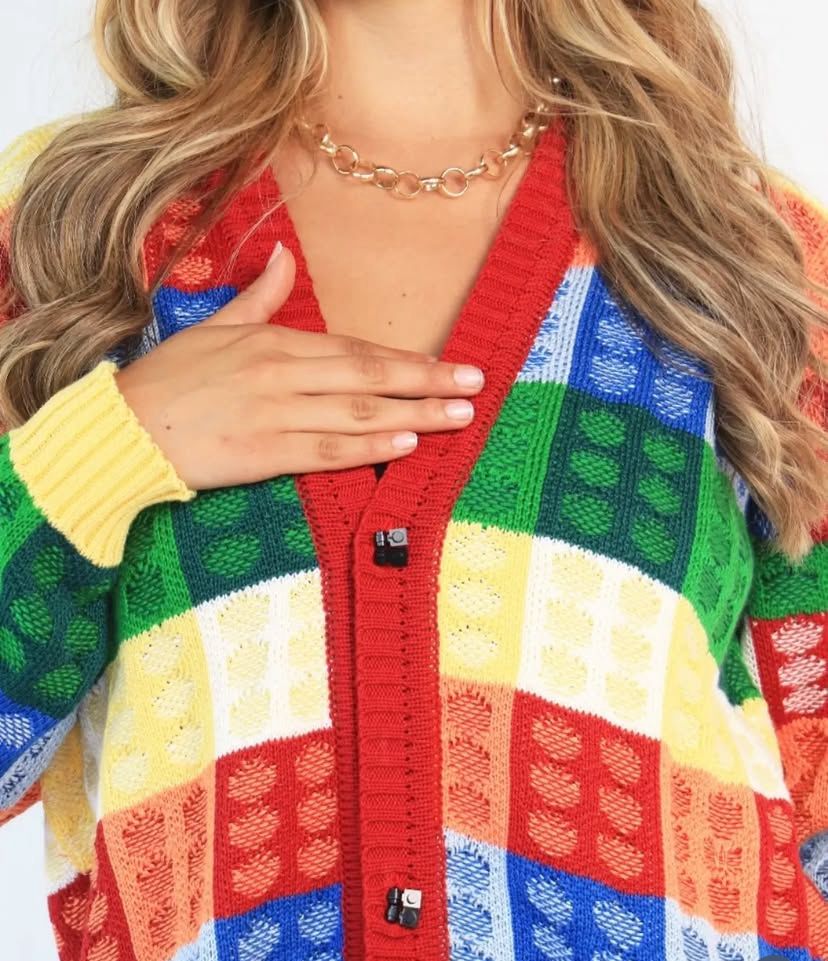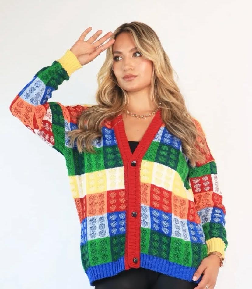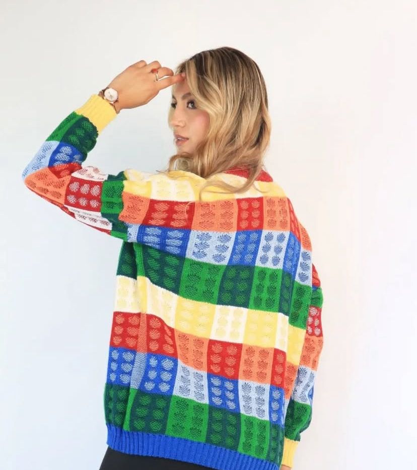 Un diseño único que juega con la nostalgia y la moda contemporánea. Este cardigan inspirado en LEGO combina estilo y diversión con un acabado sofisticado: sus botones son fichas LEGO auténticas, y el tejido está trabajado en distintos volúmenes que simulan las icónicas piezas, un detalle sutil que le aporta textura, carácter y personalidad sin perder elegancia.